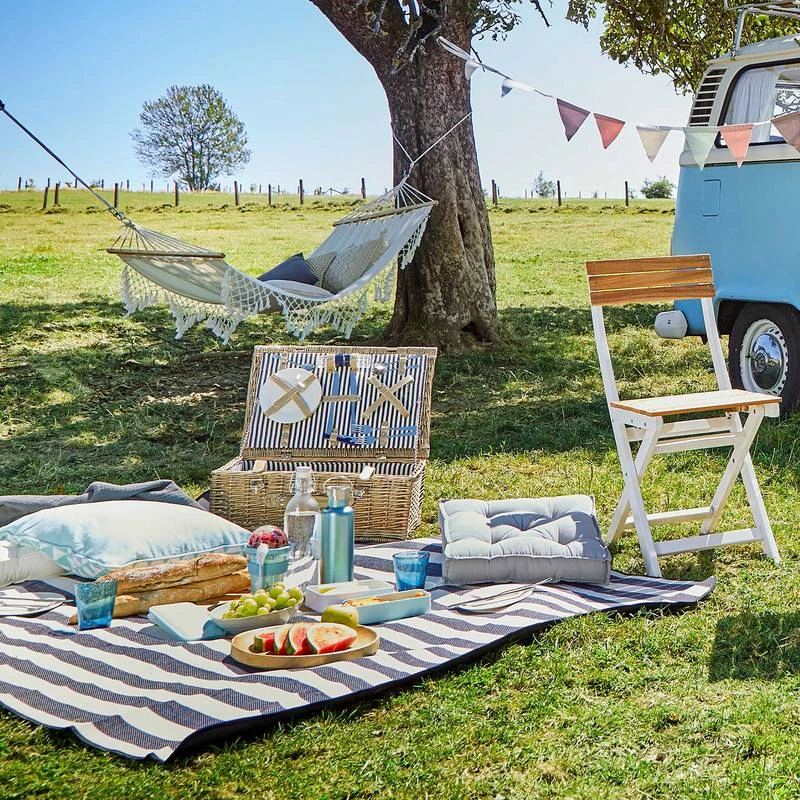 - Autres caractéristiques : Envie de prendre l’air ? Ne sortez pas sans votre nappe de pique-nique, elle se prête également à une petite sieste au grand air. Son revers imperméable vous protège efficacement de l’humidité et des salissures. Munie d’une poignée, elle est facile à transporter. Elle est lavable à 30°C et disponible en différents coloris.
