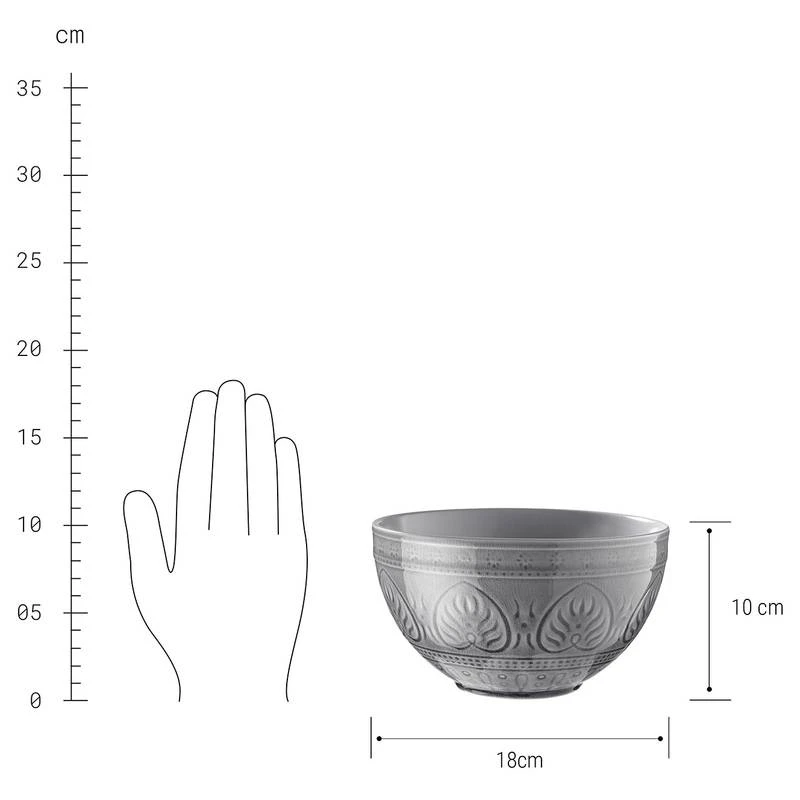 - Grand bol : Ø 18 cm / Hauteur : 10 cm / Contenance : 1250 ml